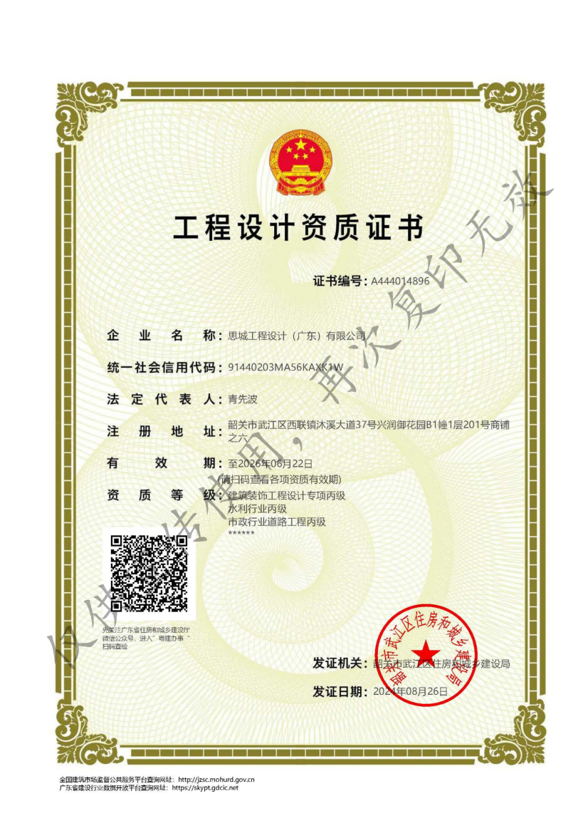 - 工程設計資質(zhì)證書