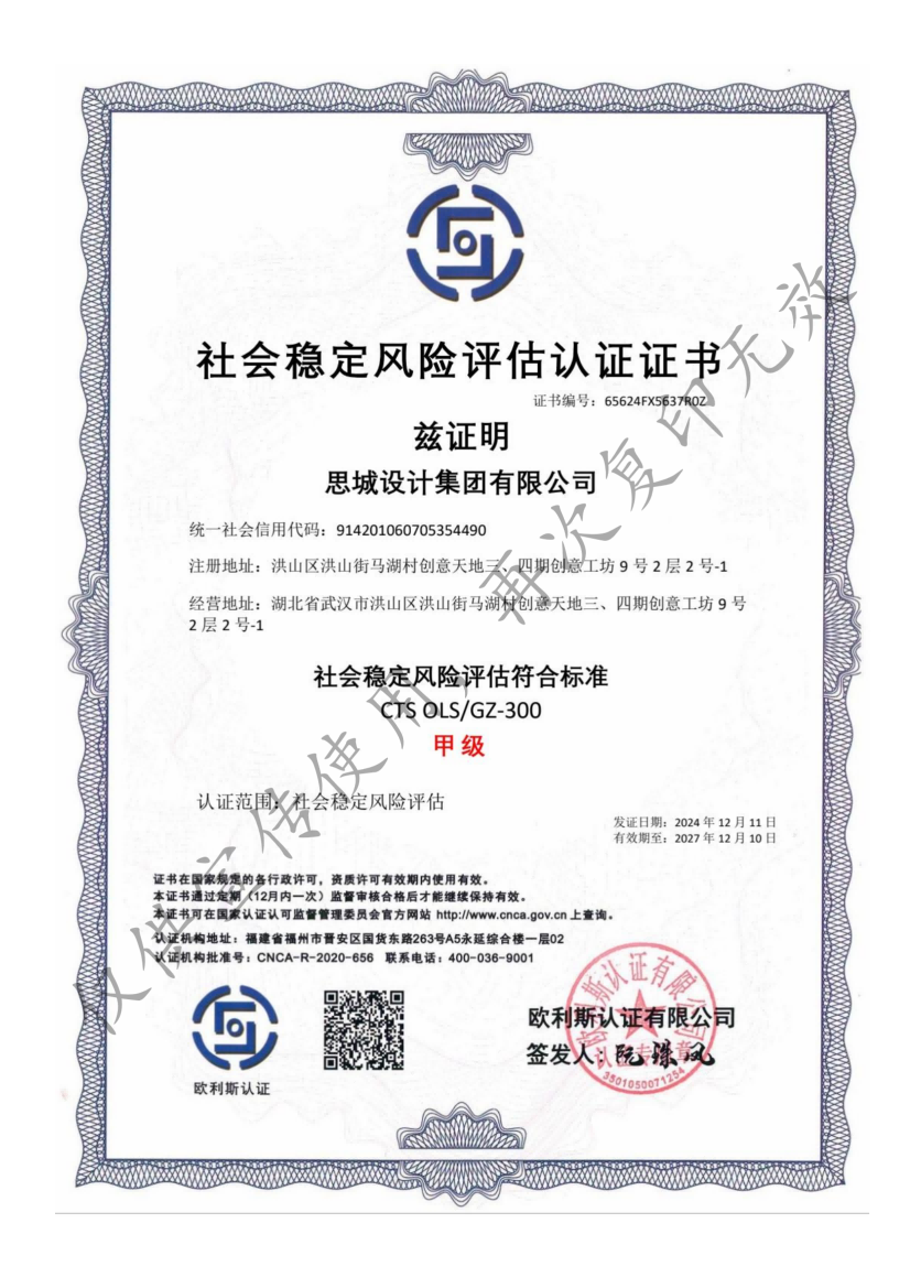 - 社會穩(wěn)定風險評估認證證書